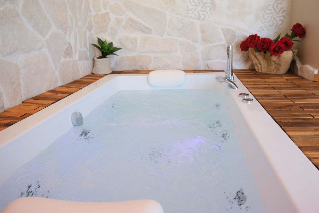 E' caratterizzata principalmente dalla presenza di una jacuzzi che si trova al suo interno, un ambiente riscaldato non solo dalle bolle dell'idromassaggio ma anche da un cielo stellato e un gioco di luci soffuse.